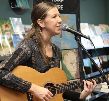 At Cambridge High School library last Thursday, Holly spoke and played her guitar to an audience of about 20 students, many of whom were interested in her writing process.