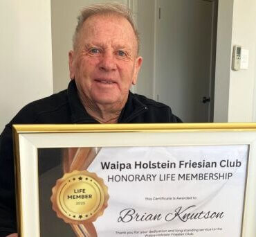Founding member of the Waipā Holstein Friesian Club, Brian Knutson, is tickled pink with the honorary life membership award bestowed on him at the club’s recent 50th jubilee celebrations.