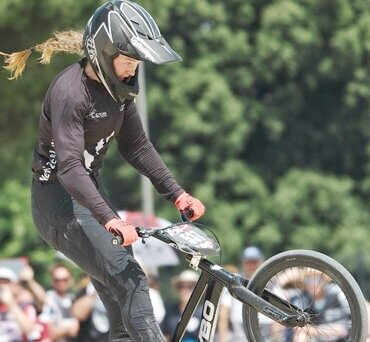 Lily Greenough in action in the recent UCI BMX Racing World Cups. Photo: Cole McOnie