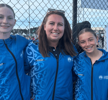 Waikato’s Cambridge Middle School (The Mighty Blues) and St Anne’s Primary School (Suva) from Fiji faced off on the second day of the AIMS Netball Girls competition. Regardless of their different cultures, the athletes shared the goals of AIMS Games displaying camaraderie and inclusivity, finishing the game by exchanging hugs and souvenirs from Fiji.