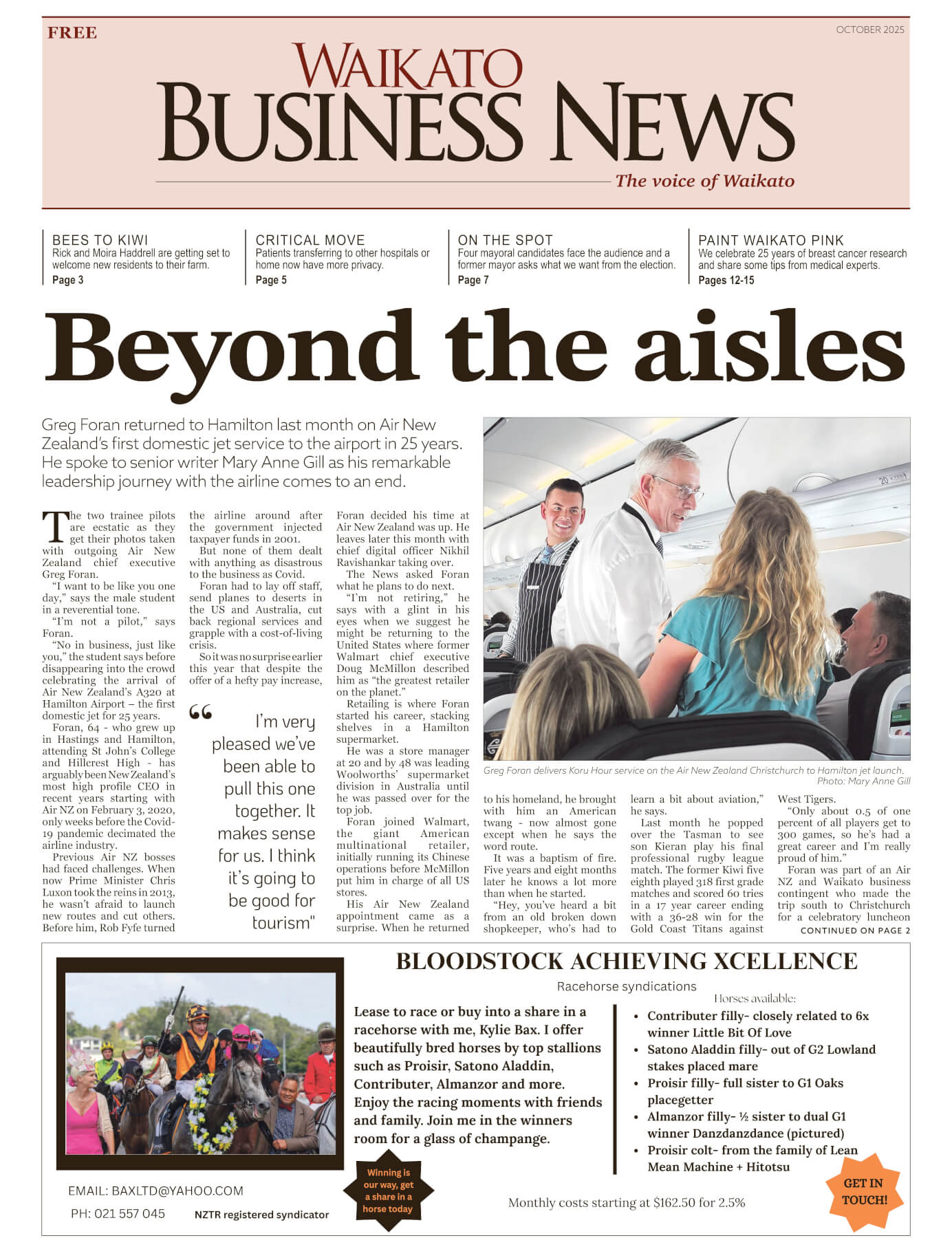 Greg Foran returned to Hamilton last month on Air New Zealand’s first domestic jet service to the airport in 25 years. He spoke to senior writer Mary Anne Gill as his remarkable leadership journey with the airline comes to an end.