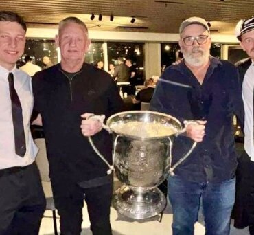 Cam and David Roigard (left) hold the Bledisloe Cup with Chris and Leroy Carter. Photo: Supplied
