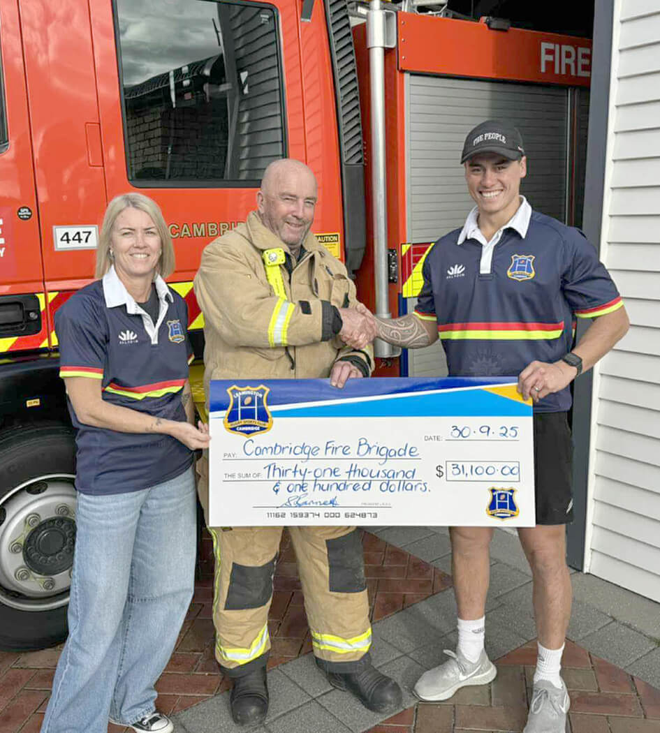Cambridge Volunteer Fire Brigade has received $31,100 from Leamington Rugby Club following a fundraiser.