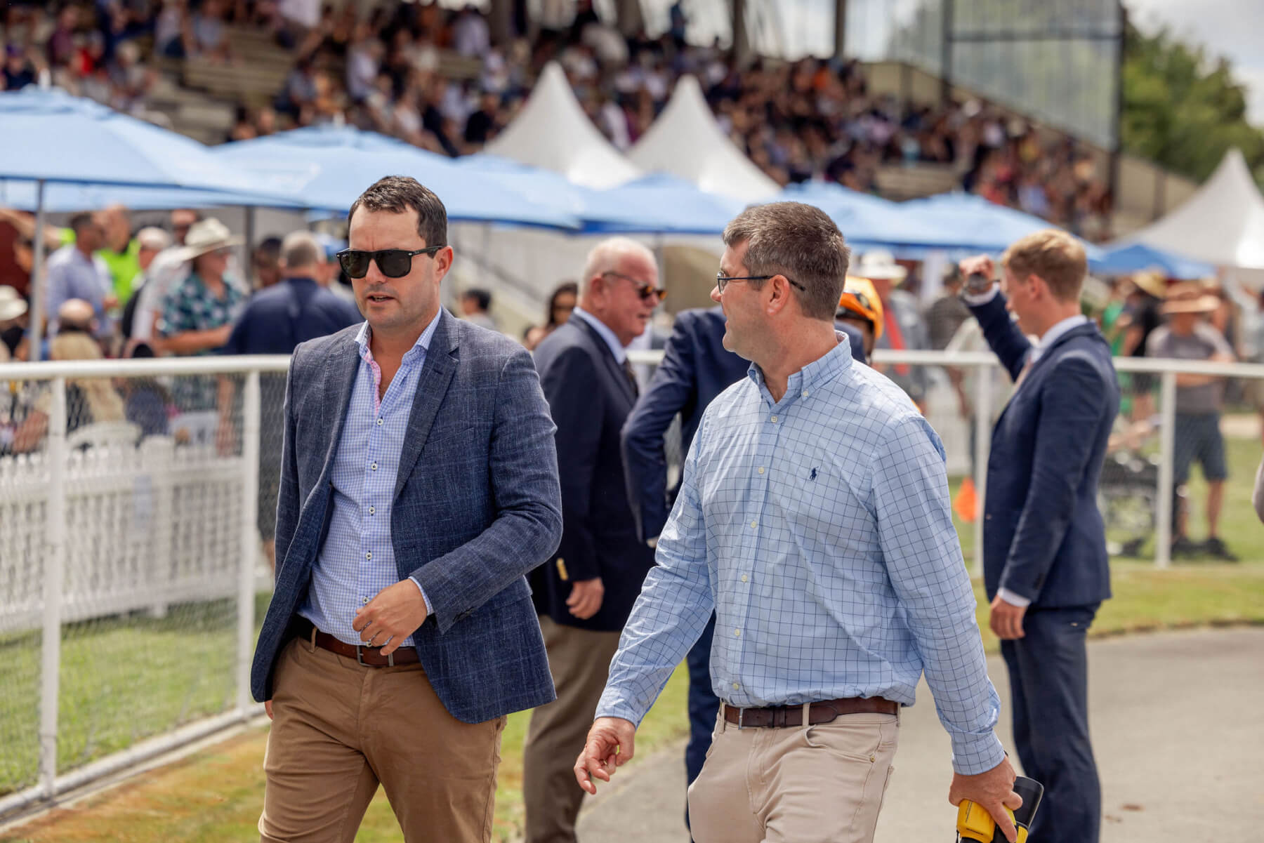 Andrew Forsman (left) recorded his 1000th winner in New Zealand at Matamata on Friday. Photo: Nicole Troost