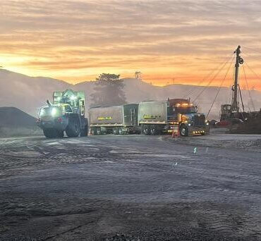 Trucks queue up to go into the Aspin Road quarry before 7am. Photo: Supplied.