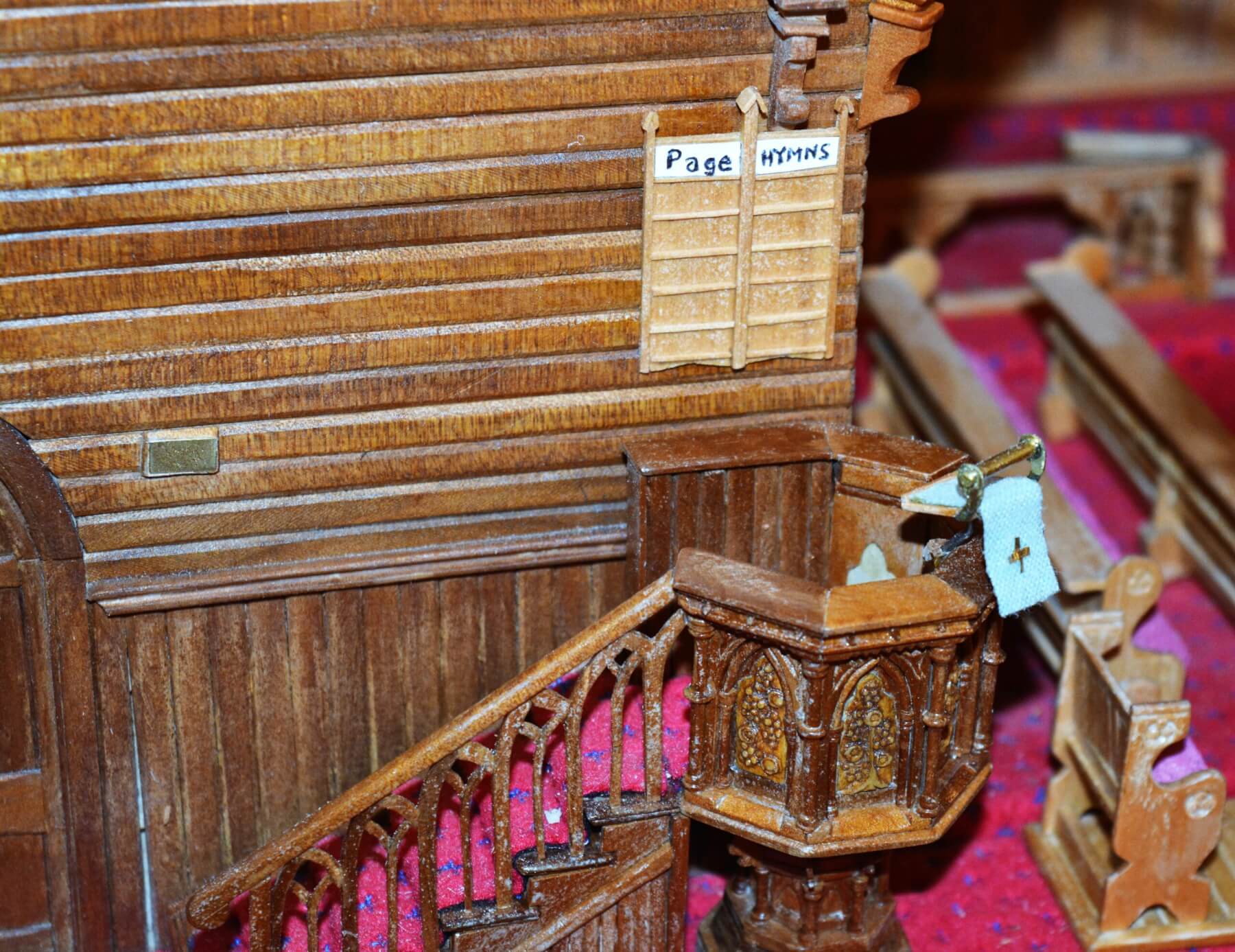 The finely carved detail of the miniature pulpit. Photo: Viv Posselt