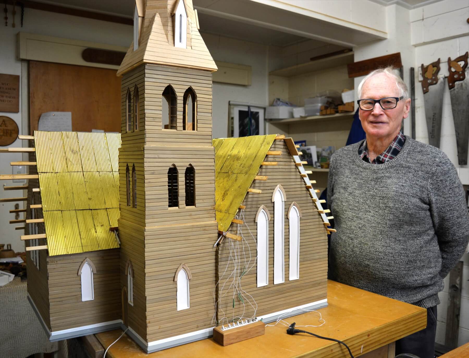 Now in his 80s Dean remains an active member of both the Hamilton and Cambridge Woodturners clubs. He is keen to know where to display the St Andrew’s Church model.