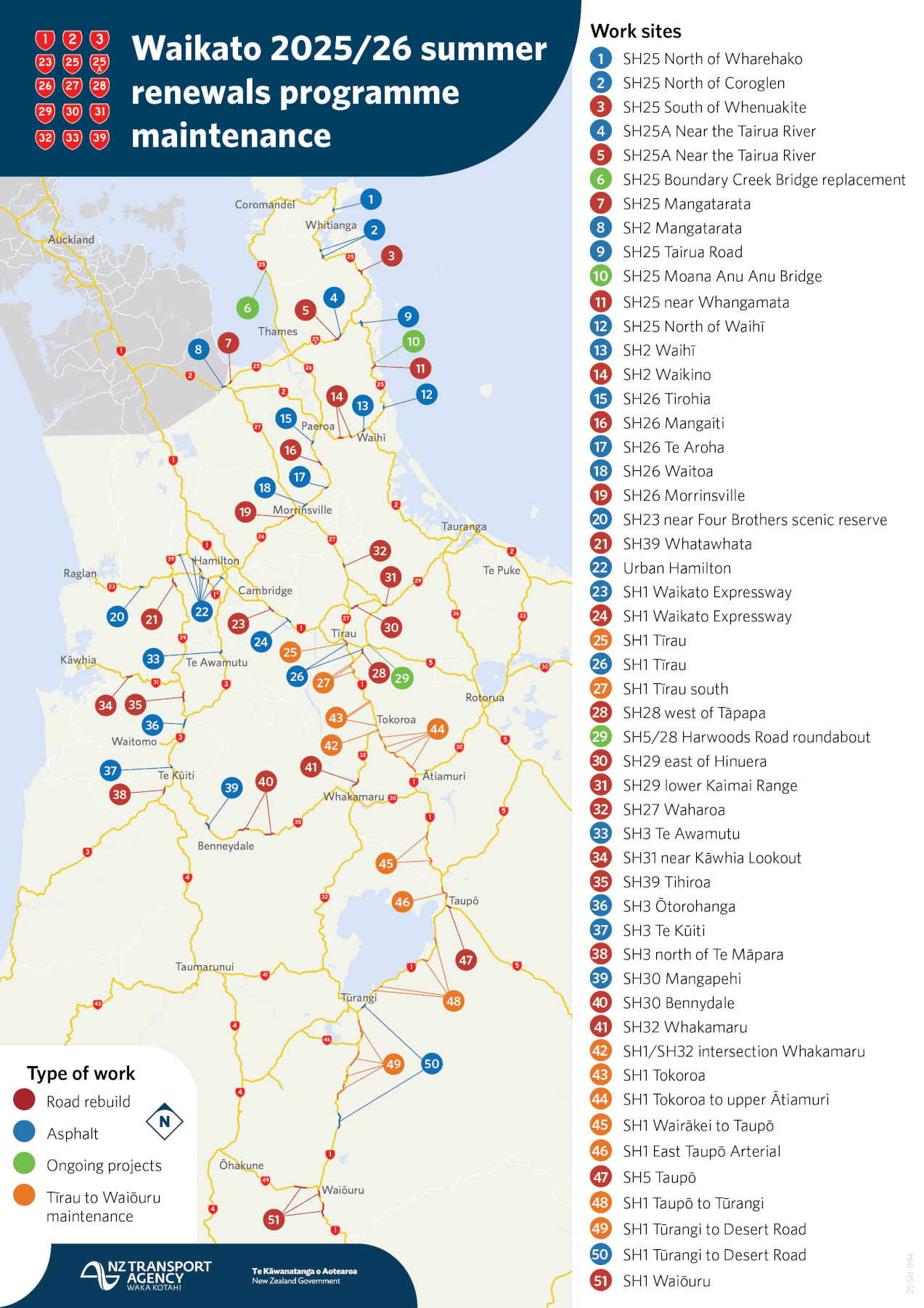 From now until March, road workers are undertaking a significant rebuild programme on state highways including the Waikato Expressway, south of Cambridge, and SH3 near Te Awamutu.