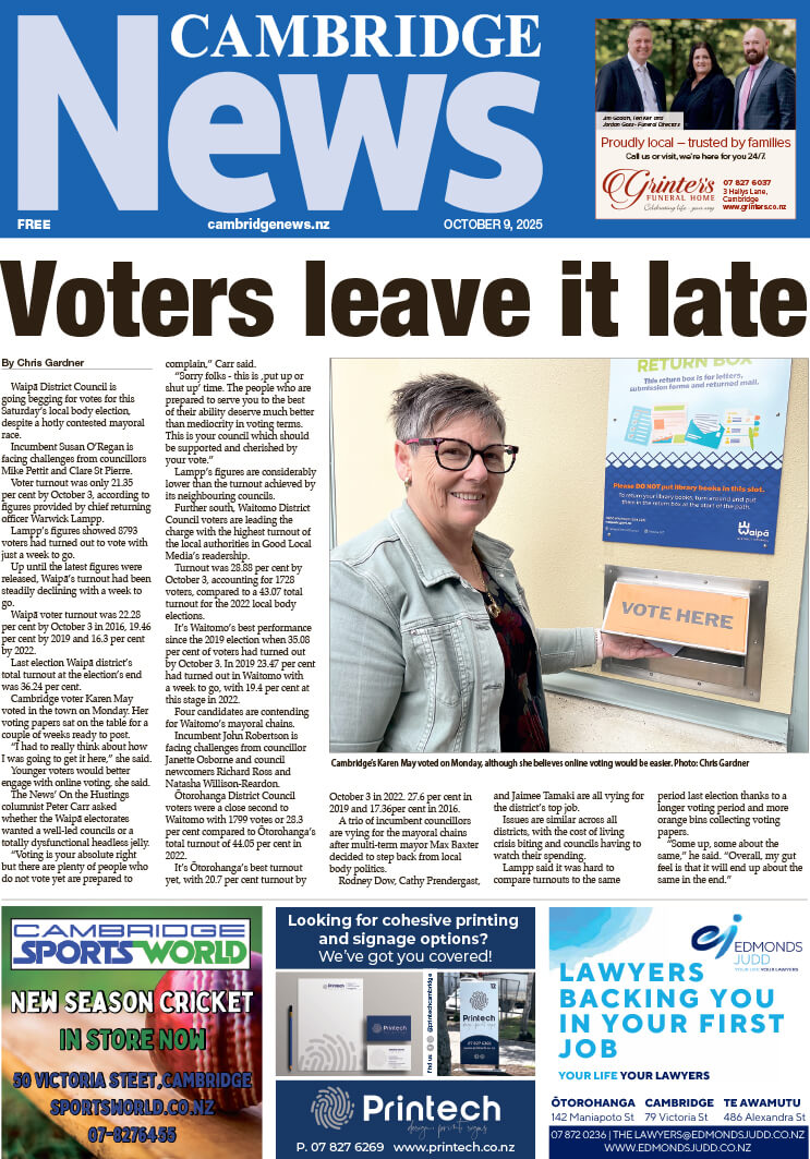 Up until the latest figures were released, Waipā’s turnout had been steadily declining with a week to go.