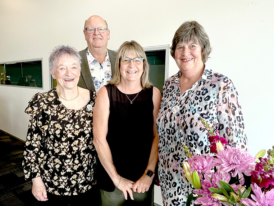 The family of founding committee member Harold Morriss with group president Marilyn Kennedy, at back. They are Grant Biggar, Sue Biggar and Kerry Morriss. Photo: Viv Posselt