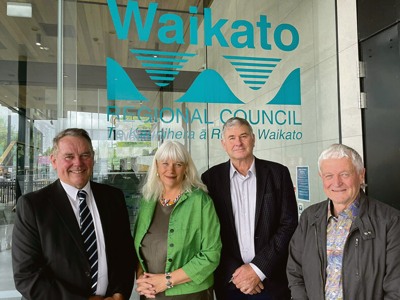 New Waikato Regional Council members Gary McGuire, Liz Stolwyk, Garry Reymer, and Keith Holmes are waiting to hear from the Environment Court. Photo Chris Gardner
