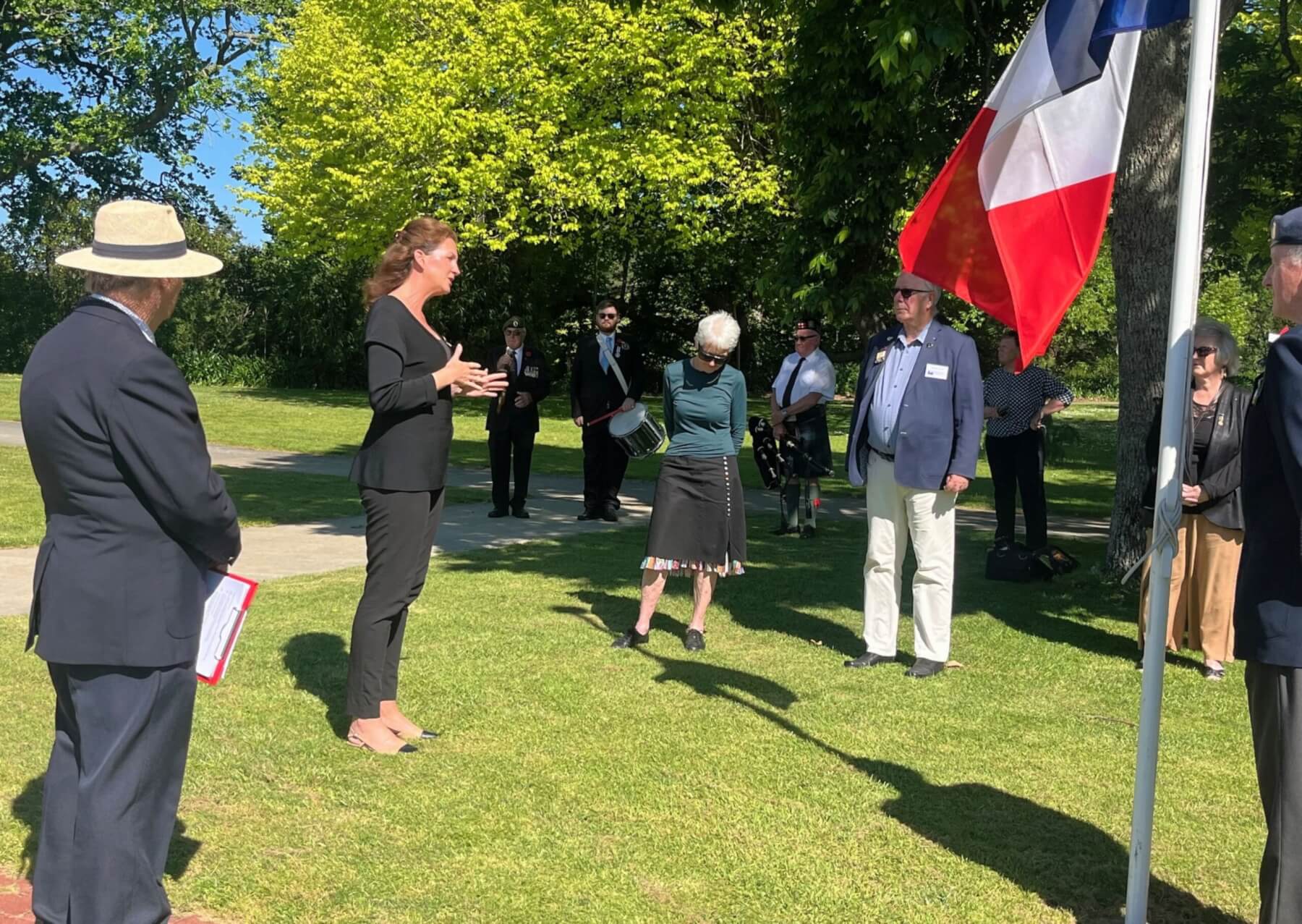 A gathering at the Le Quesnoy Sculpture in Cambridge last week commemorated the 107th anniversary of the 1918 liberation of the French town by Kiwi soldiers led by Cambridge’s second lieutenant Leslie Averill.