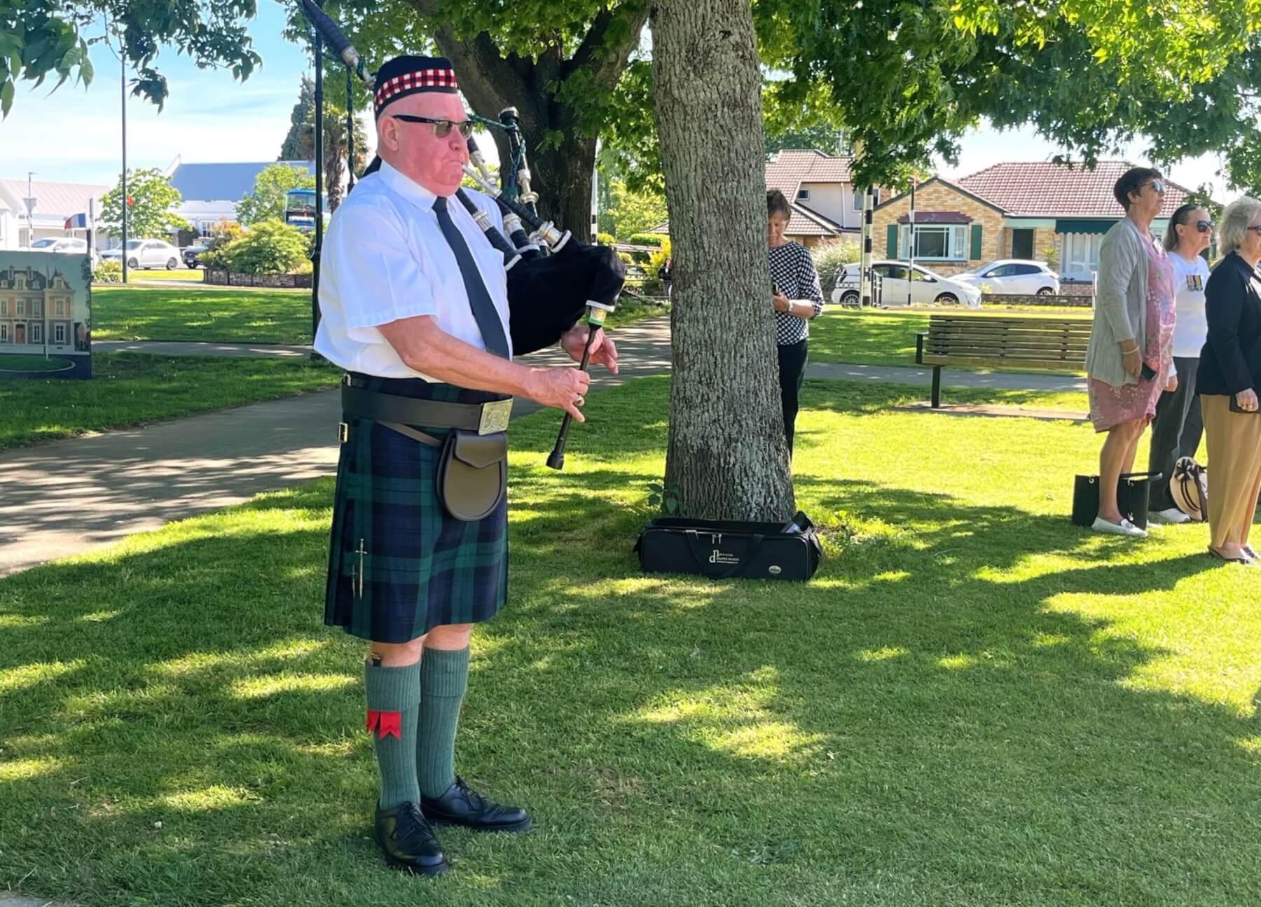 The event was attended by Waipā deputy mayor Jo Davies-Colley, with musical accompaniment by Cambridge Brass Band members Jack Redpath and bugler Doug Rose.