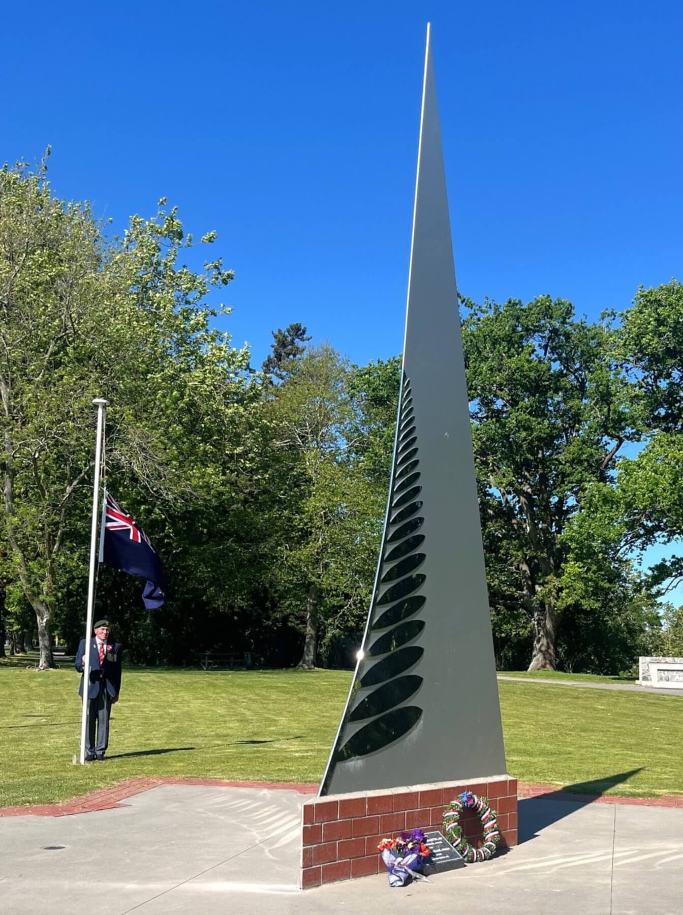 It was held at the Thornton Rd/Victoria St sculpture designed by New Zealand sculptor Fred Graham, who died in May this year. At the November 2019 unveiling of the sculpture, Graham said its design had been based on France’s Eiffel Tower, with the splayed fronds of a silver fern clasped along one edge.