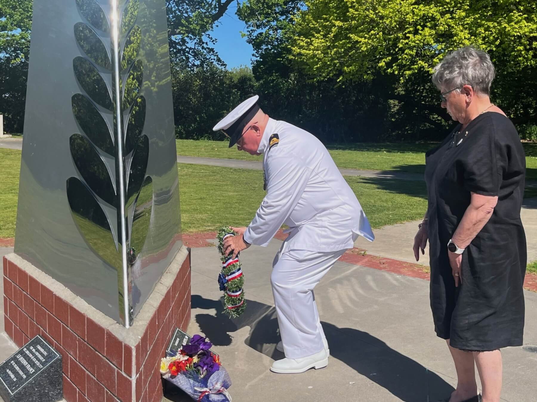 Last week’s ceremony saw a wreath laid By Heather Wellington on behalf of the Cambridge-Le Quesnoy Friendship Association, and one by Lieutenant Commander Greg Liddy RNZN (Naval Liaison Officer for Waikato) on behalf of the New Zealand Defence Forces.