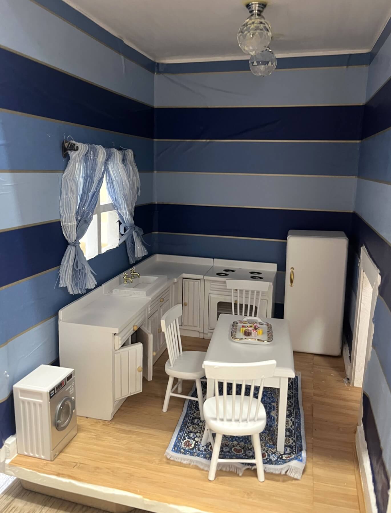 Furnishing all that space has been Alison Hucke, who used to belong to a miniature club in Auckland back in the day. She has done several doll’s houses before this – some she even built herself – but this is by far the biggest. Her perfectly decorated lounge, kitchen, bedrooms, bathrooms and office area are filled with tiny pieces of furniture, many of which she has made from scratch.