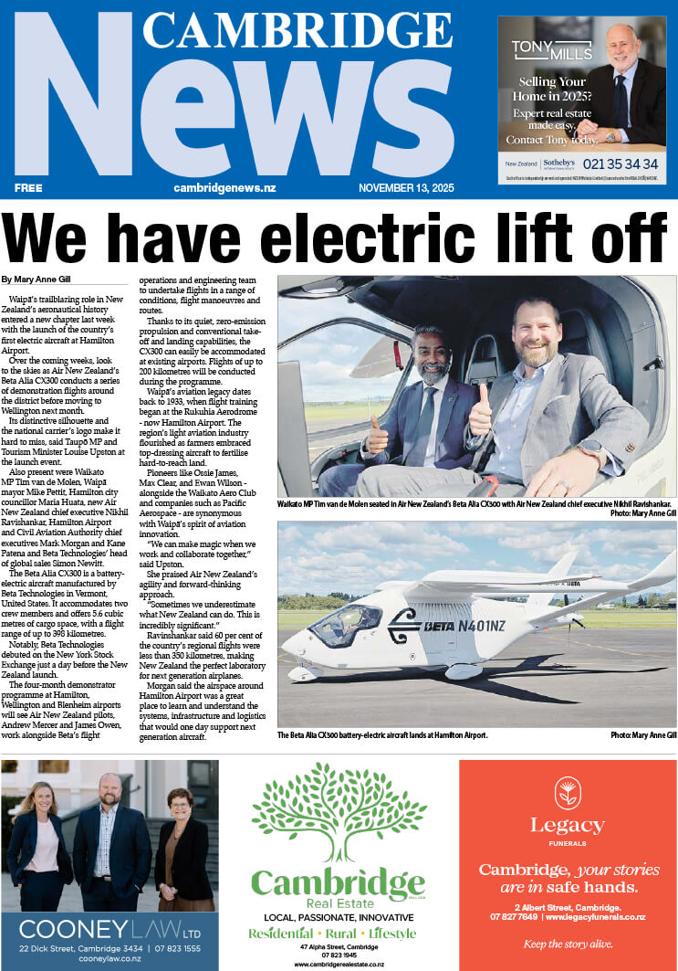 Waipā’s trailblazing role in New Zealand’s aeronautical history entered a new chapter last week with the launch of the country’s first electric aircraft at Hamilton Airport.
