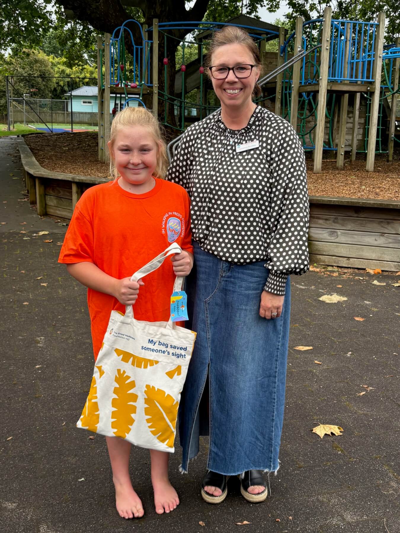 Karāpiro School student Amelia Seath-Boyte celebrates being named a finalist in the Fred Hollows Humanity Awards with her teacher Johanna Buckley.