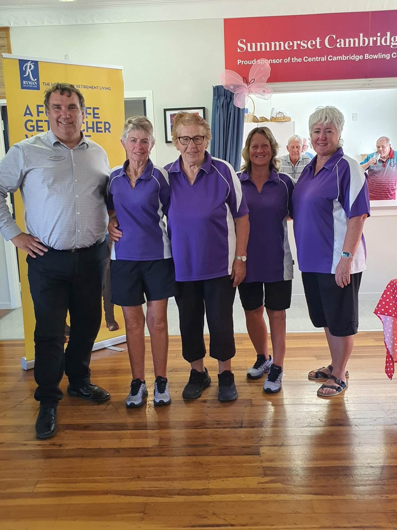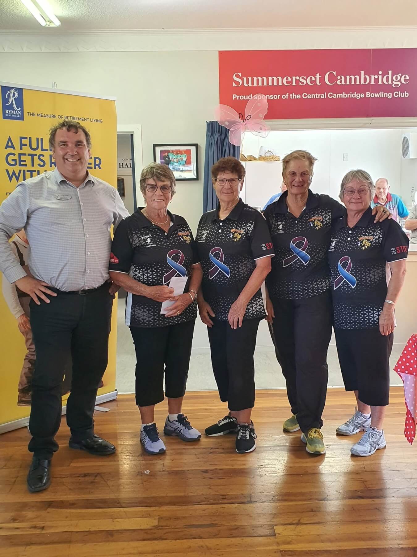 Sistaz tournament winners Robyn Wallace’s team from Omaranui/Taradale with David de Veth from Ryman Healthcare.