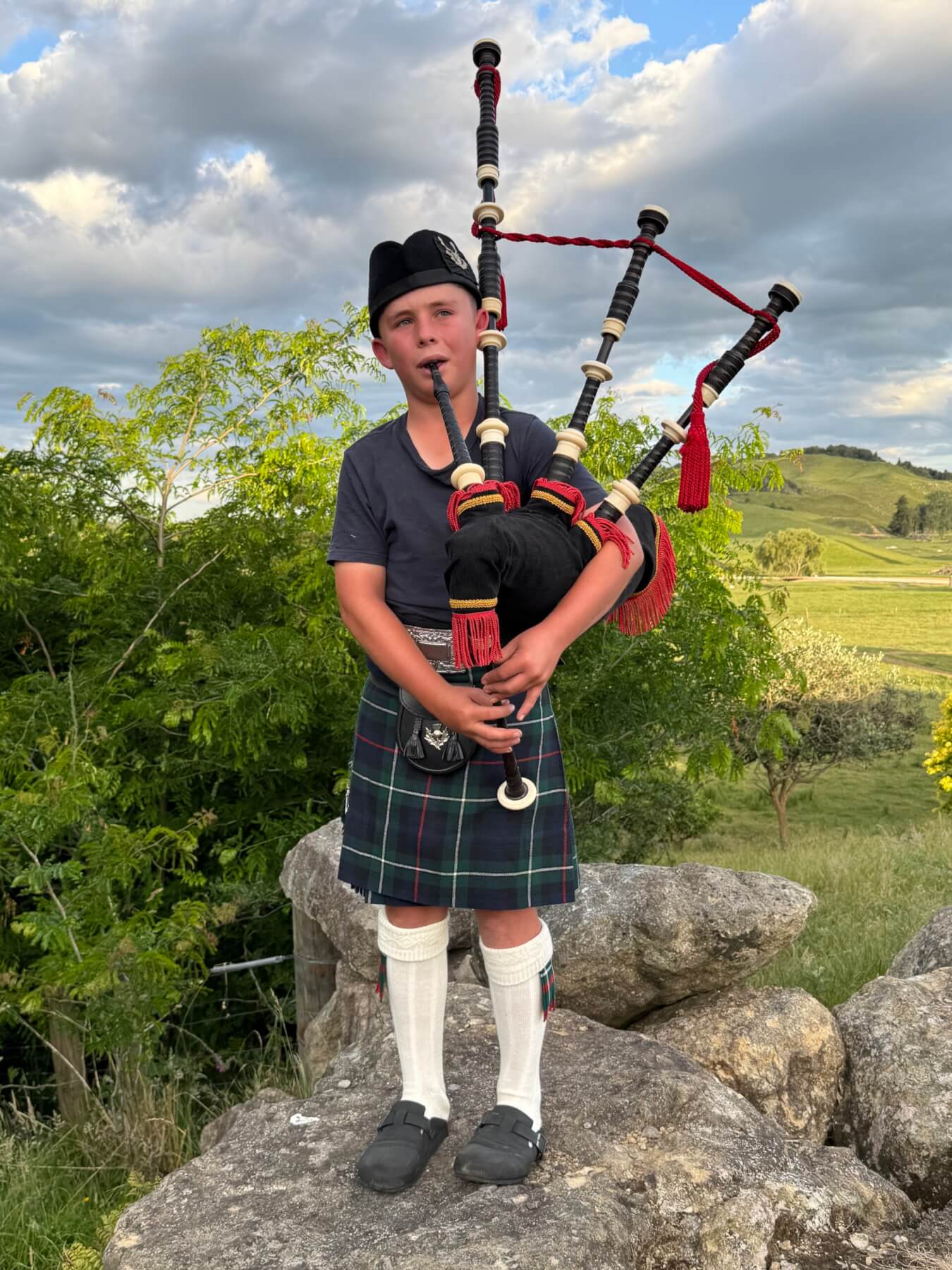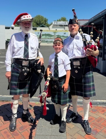 When the Cambridge and Districts Pipe Band was supported by members of the Te Awamutu and Districts and Te Kūiti pipers at the Cambridge Christmas parade, it was a first for young Archie Anselmi.
