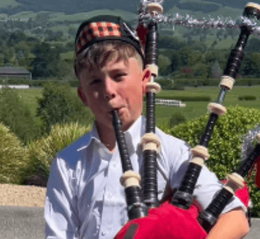 He wanted to continue learning so in 2024 the family contacted the retired ex-Pipe Major of the Cambridge and Districts Pipe Band, Bryan Mitchell about private lessons.