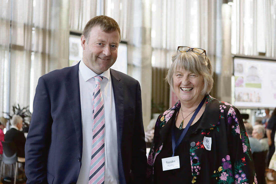 New Rural Women New Zealand chief executive Sandra Kirby at a Beehive function with Mark Patterson, the minister for Rural Communities. Photo: Supplied.