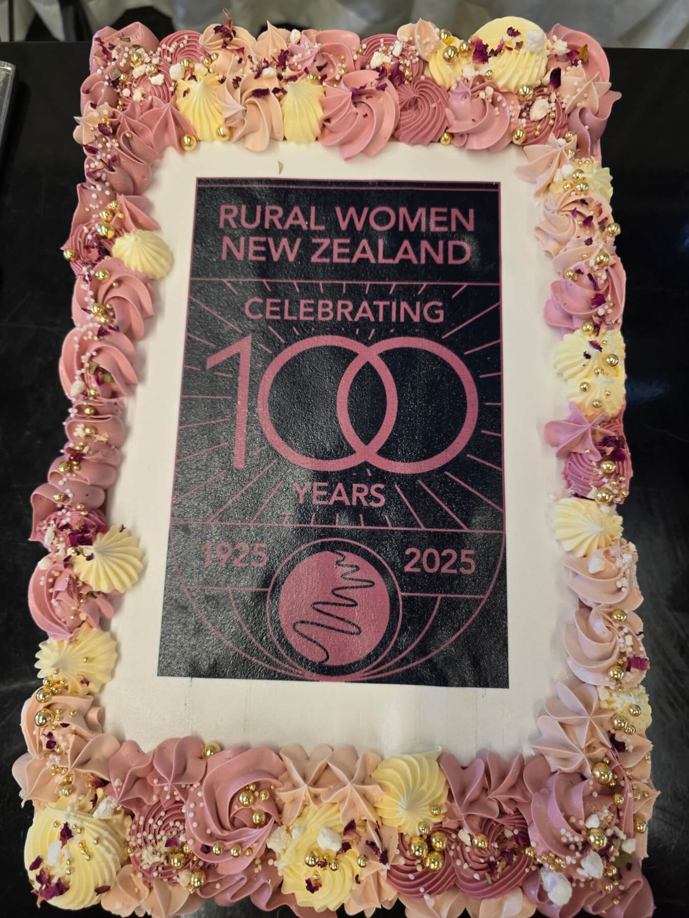 A celebratory cake made for Rural Women New Zealand by Eastport Rd Cakes.