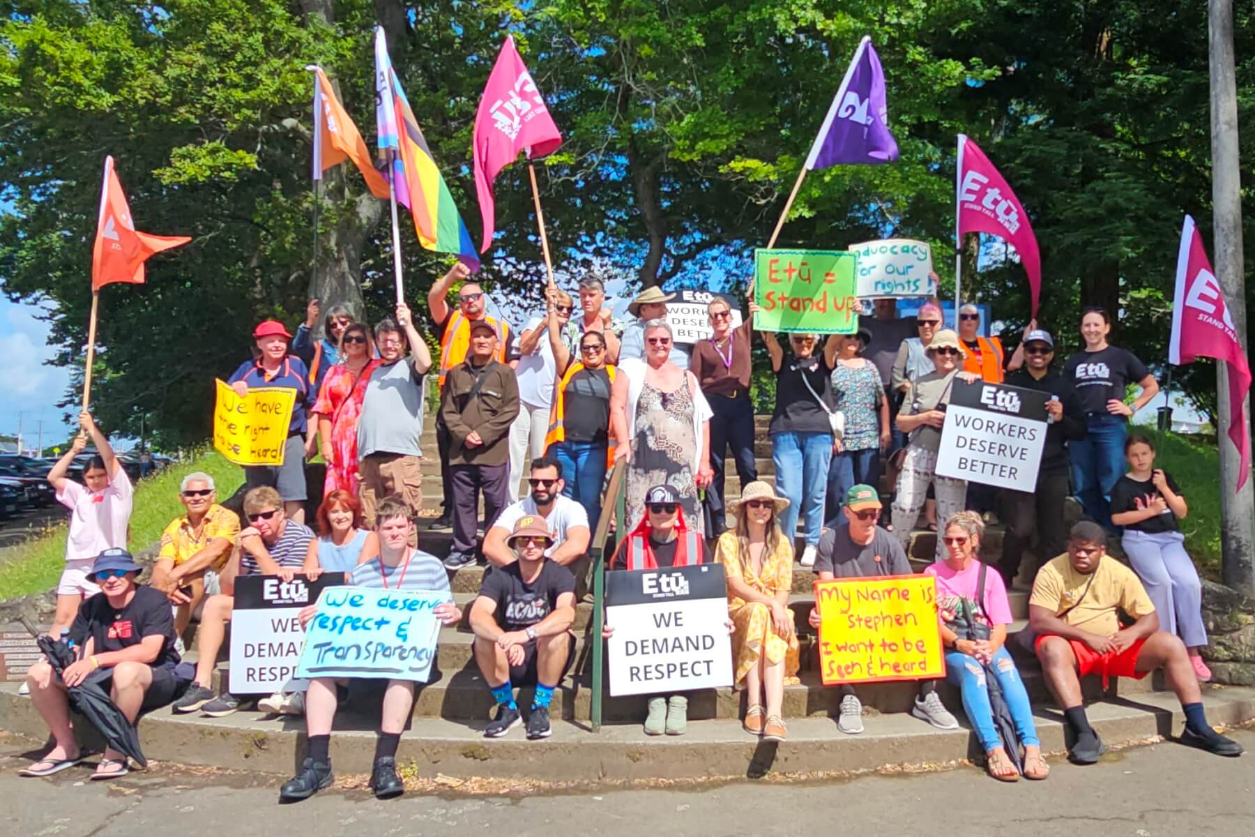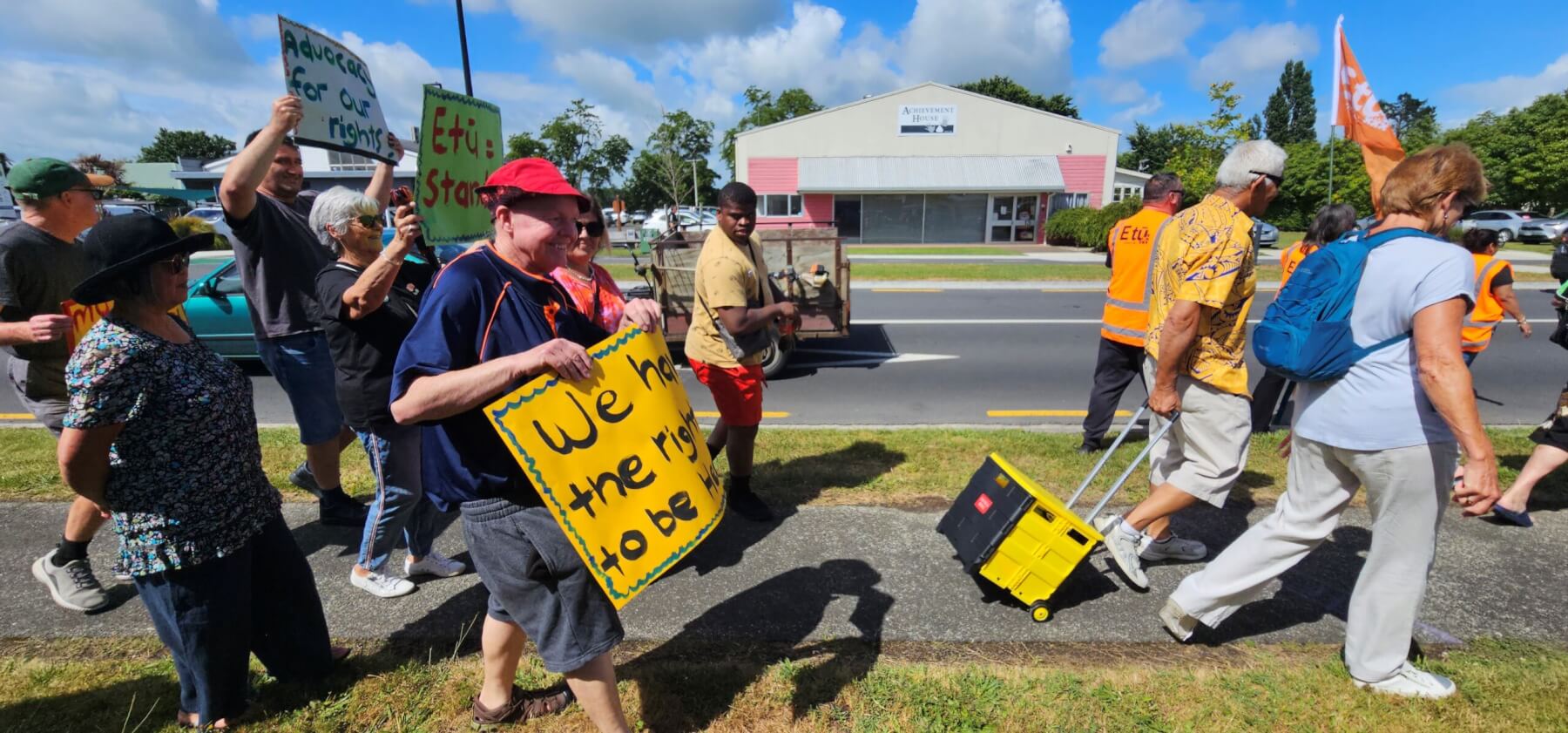 Achievement House workers, staff and union members before the protest march