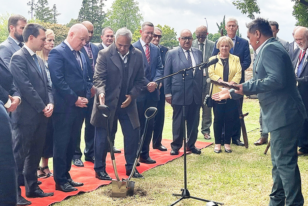 Prime Minister Christopher Luxon and Waikato-Tainui chair Tukoroirangi Morgan shared the task of turning the first sod at the site. They were accompanied by Minister of Health Simeon Brown, Minister for Universities and former health minister Dr Shane Reti, Waikato University Vice-Chancellor Professor Neil Quigley and numerous other dignitaries.