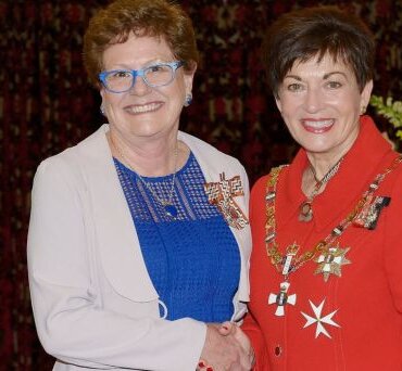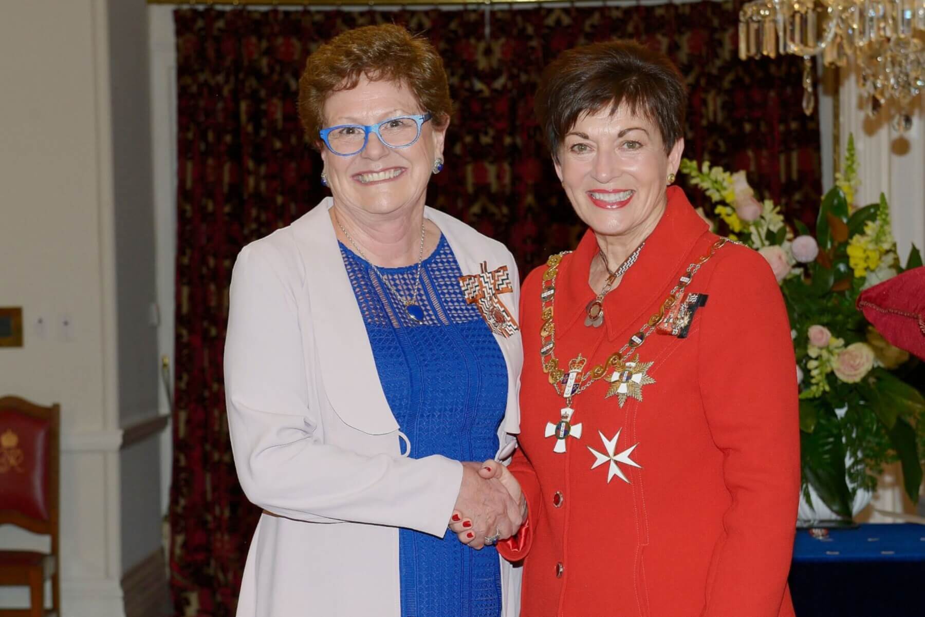 Jocelyn Cooney receiving her Queen’s Service Medal in 2018 from the then New Zealand Governor General, Dame Patsy Reddy.