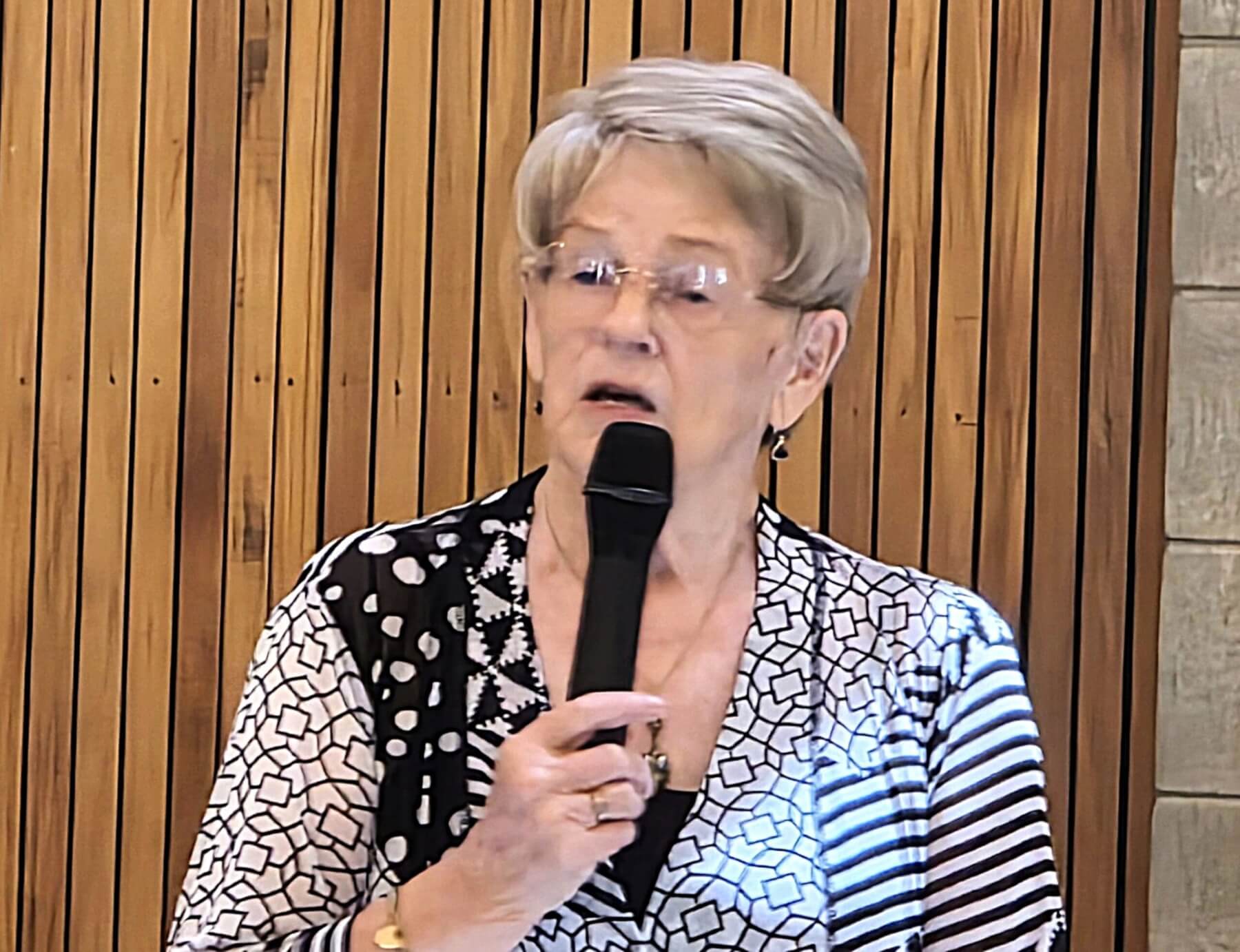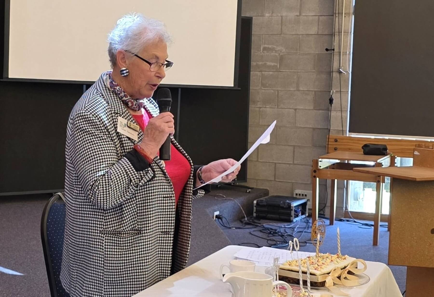 Foundation member of Cambridge 60s Up, Faye Gohns, speaking at the recent anniversary.
