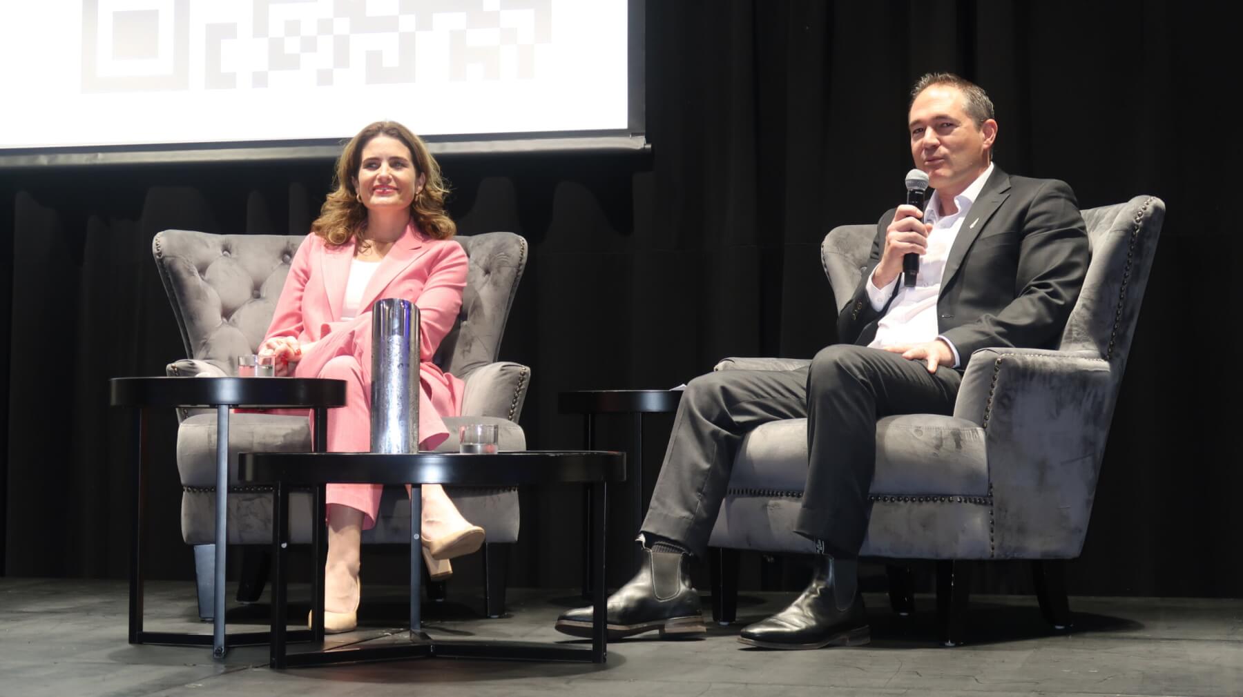 Hamilton East MP Ryan Hamilton, who is on the Finance and Expenditure Select Committee interviewed his “boss” Nicola Willis at the fireside chat. Photo: Mary Anne Gill