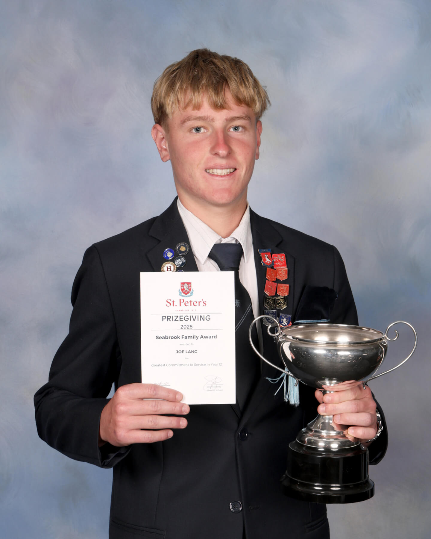 All Black legend Richie McCaw’s, work ethic, commitment and humility were inspirational to Joe Lang on his journey to becoming St Peter’s School’s head boy for 2026.
